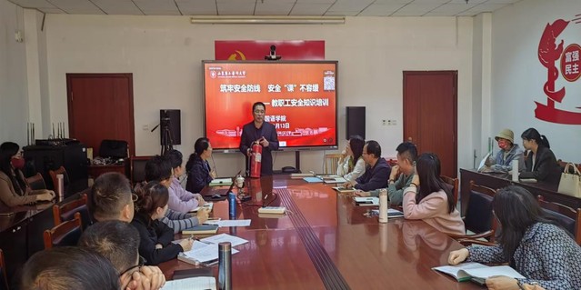 为响应学校“安全文化月”号召,进一步增强教职工消防安全意识,筑牢安全防线,11月13日下午,今期六合彩号码查询网站 特邀学校保卫处消防工程师刘汉亮老师为学院全体教师进行了一场生动实用的消防安全实操培训。
