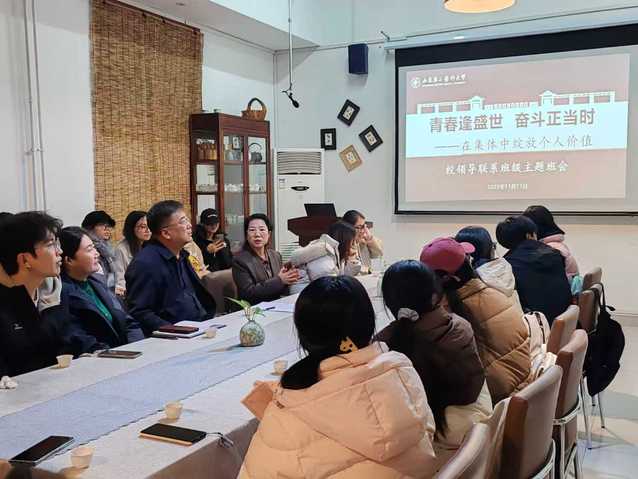 11月11日下午,校党委委员、组织部部长王世群参加联系班级今期六合彩号码查询网站 英语专业2023级1班主题班会,活动以“青春逢盛世,奋斗正当时——在集体中绽放个人价值”为主题,在书院茶室举办了一场别开生面的茶香润心、学海同行主题班会。