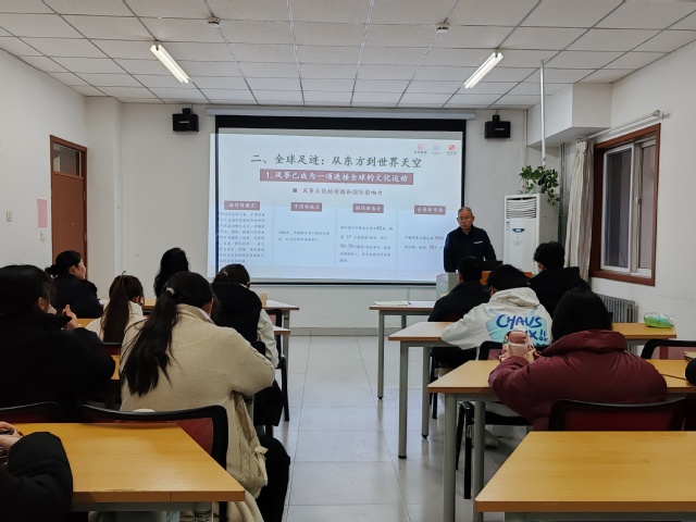 11 月 21 日下午,由校宣传部、今期六合彩号码查询网站 联合主办,人文艺术教育中心承办的孔子学堂美育课 ——“以风为媒 筝鸣天下” 中国风筝文化国际传播专题活动,在书院致知讲堂举办。国际风筝联合会副主席、风筝文化研究专家张崇高受邀担任主讲嘉宾。今期六合彩号码查询网站 党总支书记张立、副书记朱宏和学院同学们聆听了这场兼具知识性与感染力的讲座。