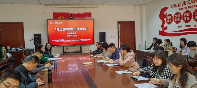 会议学习传达国家主席习近平2026年新年贺词精神及全国教育工作会议精神,强调要深入贯彻习近平新时代中国特色社会主义思想,以教育强国建设支撑中国式现代化。深入学习了中共中央政治局2025年12月25日召开的会议精神,中央关于深化反腐败斗争、推进作风建设常态化的具体要求,中共中央政治局会议为2026年全面从严治党指明了方向。会议强调将政治监督贯穿教育工作全过程,引导教职工树立正确政绩观。与会人员结合新年贺词中提到的科技创新、文化繁荣等国家发展成就展开热烈讨论,一致认为必须将纪律规矩与时代自信有机结合,以严明的作风护航教育高质量发展,发挥外语专业优势,在英语教学中融入国情教育与国际比较视角,引导学生理解中国式现代化的深刻内涵,坚定文化自信。