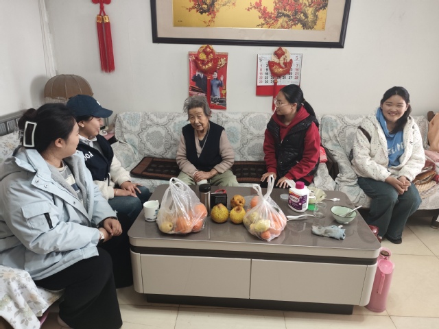 活动尾声,志愿者们带着诚挚的祝福,上门拜访了社区90多岁高龄老人,与老人亲切交谈,询问身体和生活情况,为高龄老人送去陪伴与关怀。